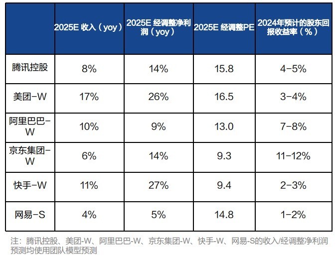 从基本面上看,国海证券认为,现阶段互联网公司重视股东回报力度,致力于保持较强的估值表现与性价比,截至2025年2月14日,大部分互联网公司2025年估值仍在17XPE以下,收入增速在12%左右,部分公司利润增速仍维持较高水平,股东回报可观。